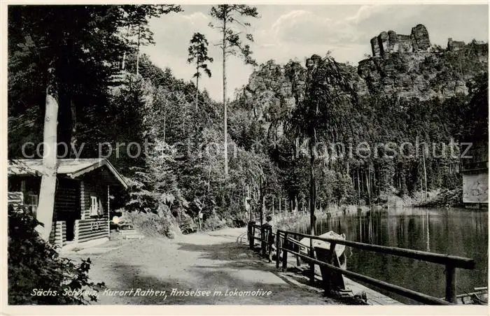 AK / Ansichtskarte 73808351 Rathen_Saechsische Schweiz Amselsee mit Lokomotive Rathen Saechsische Schweiz