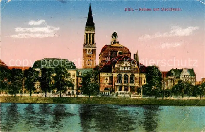 AK / Ansichtskarte 73808437 Kiel Rathaus und Stadttheater Feldpost Kiel