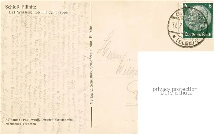 73808476 Pillnitz_Dresden Schloss Pillnitz Das Wasserschloss mit Treppe postalisch gelaufen 1937 Erhaltung siehe scans [WerneD78] [WernPID7 ]