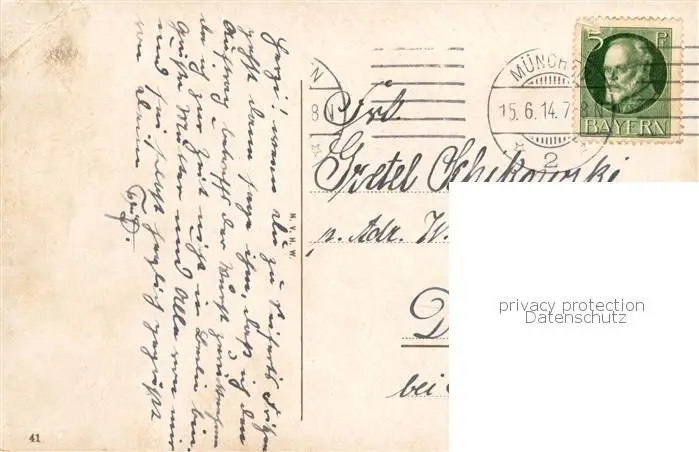 73808681 Muenchen Stadtblick mit Alpenpanorama Muenchen postalisch gelaufen 1914 Erhaltung siehe scans [FriedD77] [Frierer ]