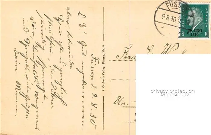 73808884 Fuessen_Allgaeu Schloss Fuessen Allgaeu postalisch gelaufen 1930 Erhaltung siehe scans [WerneD78] [WernPID7 ]