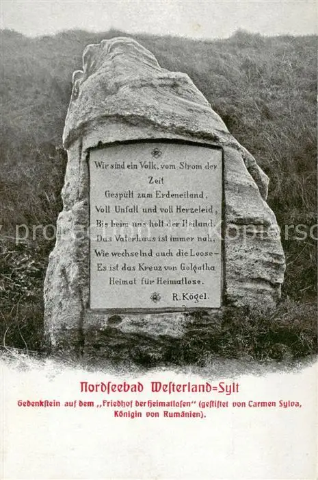 73809117 Westerland_Sylt Gedenkstein auf dem Friedhof der Heimatlosen Westerland_Sylt postalisch nicht gelaufen 1921-1965 Erhaltung siehe scans [FriedD77] [Frierer ]