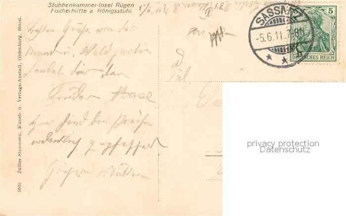 73809169 Insel_Ruegen Stubbenkammer Fischerhuette am Koenigsstuhl Insel Ruegen postalisch gelaufen 1911 Erhaltung siehe scans [FriedD77] [Frierer ]