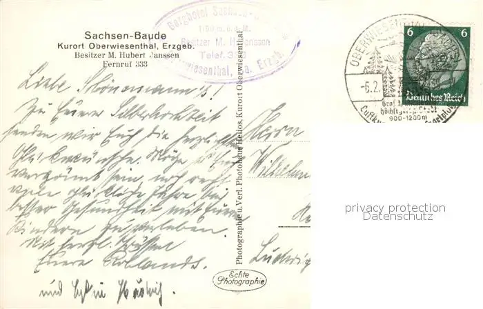 73809320 Fichtelberg_Oberwiesenthal_Erzgebirge Sachsenbaude postalisch gelaufen 1921-1965 Erhaltung siehe scans [WerneD78] [WernPID7 ]