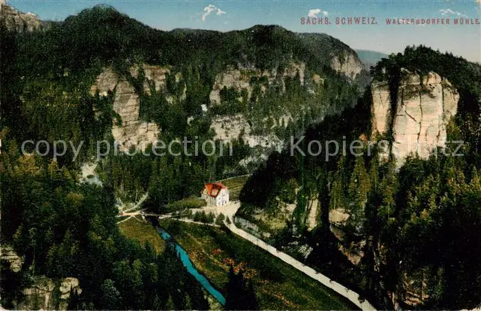73809394 Saechsische_Schweiz Waltersdorfer Muehle Panorama Saechsische Schweiz postalisch nicht gelaufen 1921-1965 Erhaltung siehe scans [WerneD78] [WernPID7 ]