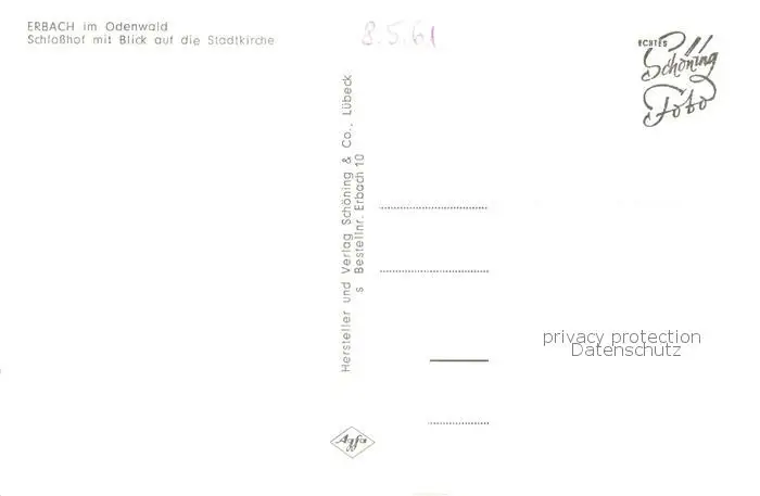 73809681 Erbach_Odenwald Schlosshof mit Blick auf die Stadtkirche Erbach Odenwald postalisch nicht gelaufen 1961 Erhaltung siehe scans [FriedD77] [Frierer ]
