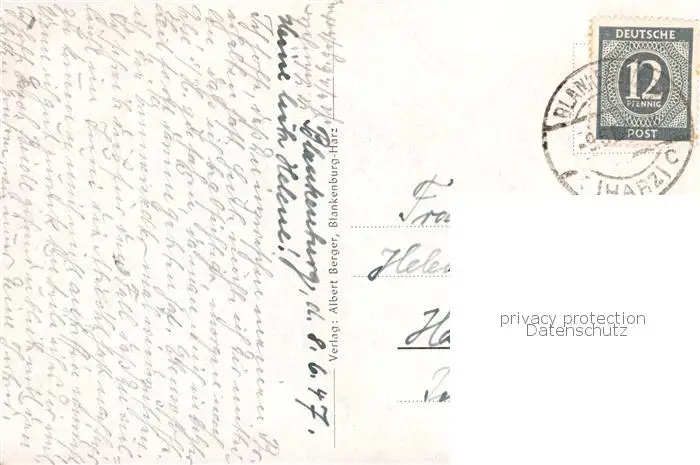 73809745 Blankenburg_Harz Panorama Blick zum Schloss Blankenburg_Harz postalisch gelaufen 1947 Erhaltung siehe scans [FriedD77] [Frierer ]
