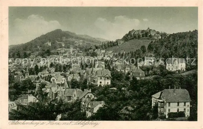 AK / Ansichtskarte 73809767 Blankenburg_Harz Stadtpanorama mit Schlossberg Kupfertiefdruck Blankenburg_Harz