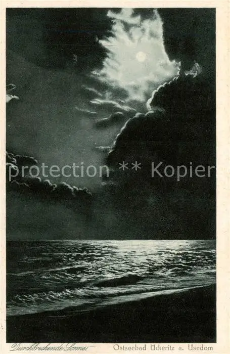 73809782 ueckeritz_Usedom Naturschauspiel Durchbrechende Sonne ueckeritz Usedom postalisch gelaufen 1930 Erhaltung siehe scans [FriedD77] [Frierer ]