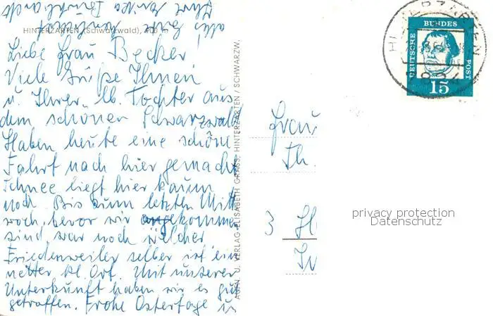 73809851 Hinterzarten Panorama Kurort im Schwarzwald Hinterzarten postalisch gelaufen 1964 Erhaltung siehe scans [FriedD77] [Frierer ]