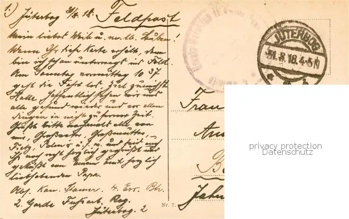 73809863 Jueterbog Roland am Rathaus Jueterbog postalisch gelaufen 1918 Feldpost - Stempel Erhaltung siehe scans [FriedD77] Feldpost - Stempel[Frierer ]