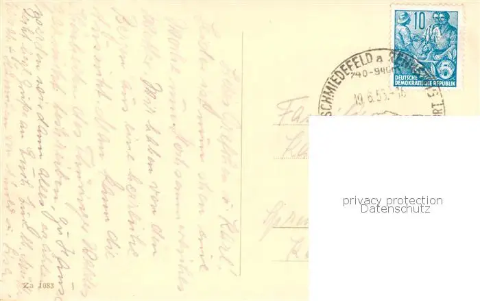 73809885 Schmiedefeld_Rennsteig Teilansicht Luftkurort Schmiedefeld_Rennsteig postalisch gelaufen 1955 Erhaltung siehe scans [FriedD77] [Frierer ]