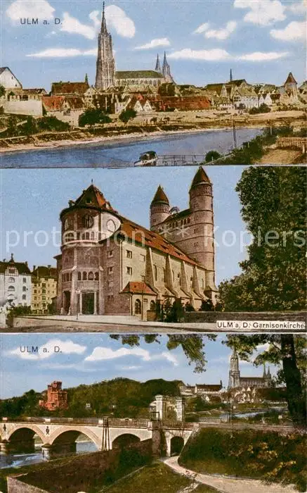 AK / Ansichtskarte 73809887 Ulm__Donau Blick zum Muenster Garnisonkirche Donaubruecke