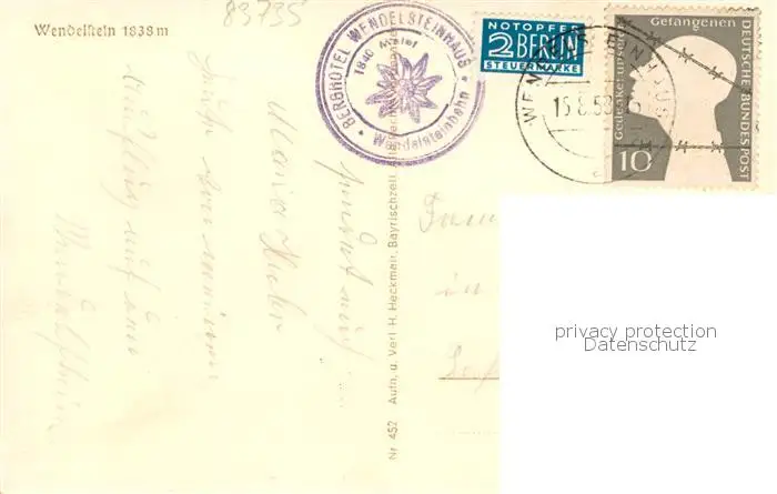 73810078 Wendelsteinhaus_1724m_Bayrischzell Motiv postalisch gelaufen 1958 Erhaltung siehe scans [FriedD77] [Frierer ]