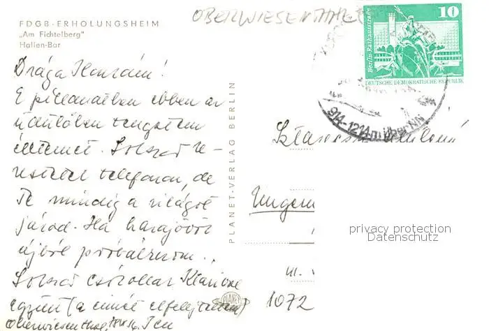 73810112 Oberwiesenthal_Erzgebirge FDGB Erholungsheim Am Fichtelberg Hallen Bar Oberwiesenthal Erzgebirge postalisch gelaufen nach 1965 Erhaltung siehe scans [FriedD77] [Frierer ]