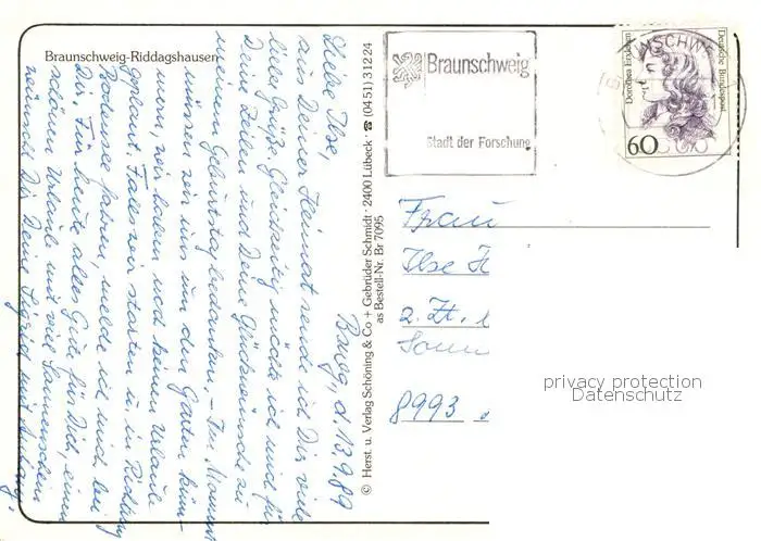 73810151 Riddagshausen_Braunschweig Fachwerkhaeuser postalisch gelaufen 1989 Erhaltung siehe scans [FriedD77] [Frierer ]