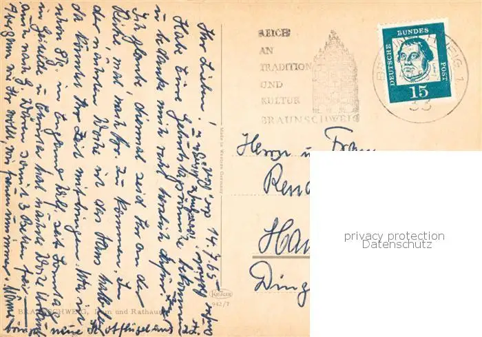73810158 Braunschweig Dom und Rathaus Braunschweig postalisch gelaufen 1965 Erhaltung siehe scans [FriedD77] [Frierer ]