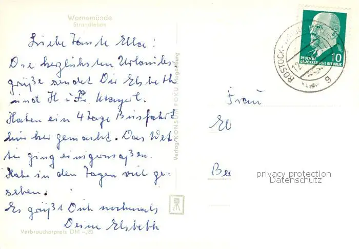 73810191 Warnemuende_Ostseebad Strandleben Warnemuende_Ostseebad postalisch gelaufen 1921-1965 Erhaltung siehe scans [FriedD77] [Frierer ]