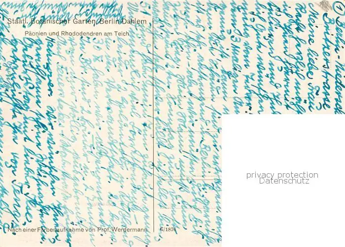 73810200 Dahlem_Berlin Staatl Botanischer Garten Paeonien und Rhododendren am Teich Dahlem_Berlin postalisch nicht gelaufen 1945 Erhaltung siehe scans [FriedD77] [Frierer ]