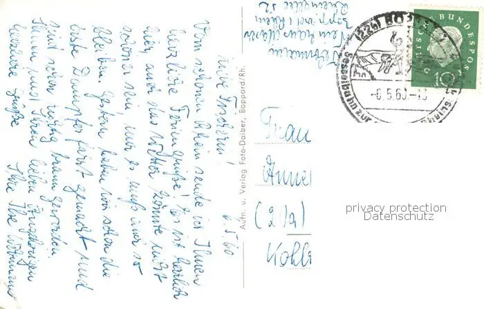 73810279 Boppard_Rhein Panorama Boppard Rhein postalisch gelaufen 1960 Erhaltung siehe scans [WerneD78] [WernPID7 ]