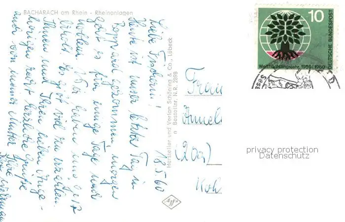 73810299 Bacharach_Rhein Rheinanlagen Bacharach Rhein postalisch gelaufen 1960 Erhaltung siehe scans [WerneD78] [WernPID7 ]