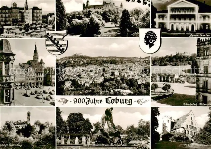 AK / Ansichtskarte 73810383 Coburg Schloss Ehrenburg Veste Coburg Landestheater Markt Schloss Callenberg Sintflutbrunnen im Rosengarten Schlossplatz Schloss Rosenau Coburg