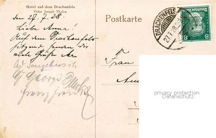 73810462 Koenigswinter_Rhein Ruine Drachenfels Rheinpartie postalisch gelaufen 1928 Erhaltung siehe scans [WerneD78] [WernPID7 ]