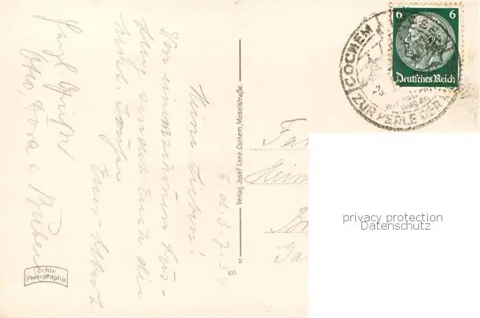73810483 Cochem_Kochem_Mosel Blick vom Pinnerkreuzberg postalisch gelaufen 1934 Erhaltung siehe scans [WerneD78] [WernPID7 ]