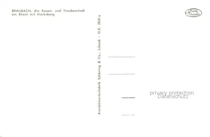 73810502 Braubach_Rhein Rosen und Traubenstadt mit Marksburg Braubach Rhein postalisch nicht gelaufen 1921-1965 Erhaltung siehe scans [WerneD78] [WernPID7 ]