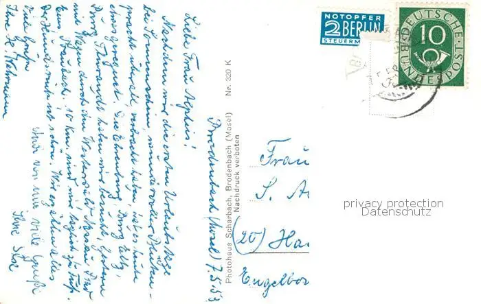 73810513 Brodenbach_Mosel Blick vom Teufelslay postalisch gelaufen 1953 Erhaltung siehe scans [WerneD78] [WernPID7 ]