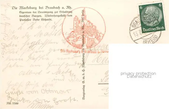 73810749 Braubach_Rhein Die Marksburg Braubach Rhein postalisch gelaufen 1921-1965 Erhaltung siehe scans [WerneD78] [WernPID7 ]