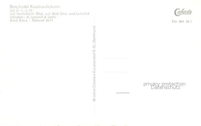 73810828 Bad_Ems_Lahn Berghotel Konkordiaturm Terrasse Panorama Bad_Ems_Lahn postalisch nicht gelaufen 1921-1965 Erhaltung siehe scans [WerneD78] [WernPID7 ]