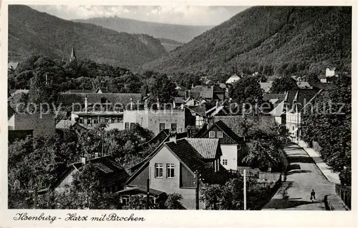 73810905 Ilsenburg_Harz Ortsansicht mit Blick zum Brocken Ilsenburg Harz postalisch gelaufen 1935 Erhaltung siehe scans [FriedD77] [Frierer ]