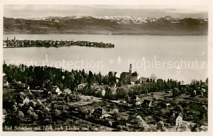 AK / Ansichtskarte 73810915 Bad_Schachen_Bodensee Panorama Blick nach Lindau und die Alpen