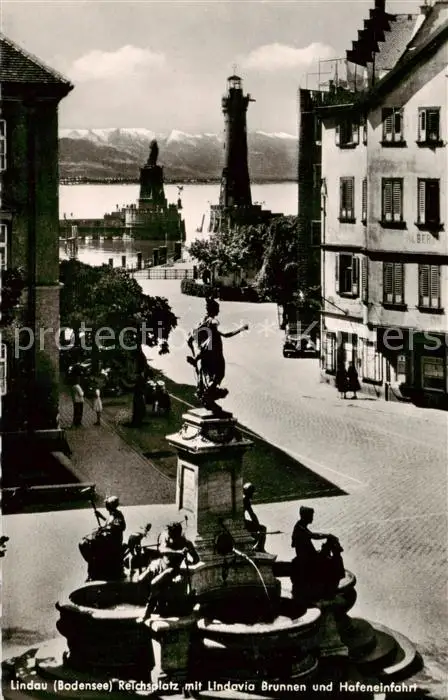 73810934 Lindau_Bodensee Reichsplatz mit Lindaviabrunnen und Hafeneinfahrt Lindau Bodensee postalisch nicht gelaufen 1921-1965 Erhaltung siehe scans [FriedD77] [Frierer ]