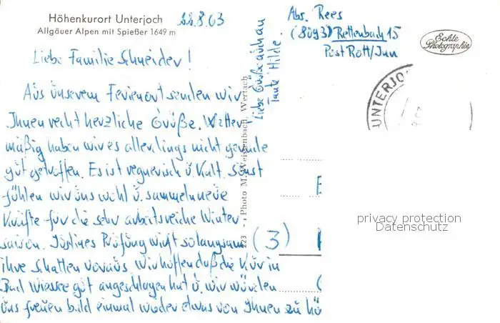 73810966 Unterjoch_Bad_Hindelang Panorama Blick gegen Spiesser Allgaeuer Alpen postalisch gelaufen 1963 Erhaltung siehe scans [FriedD77] [Frierer ]