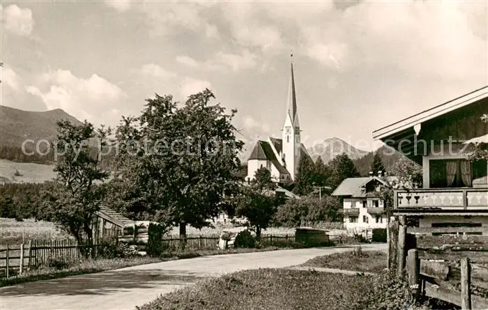 AK / Ansichtskarte 73810989 Bad_Wiessee Katholische Kirche mit Hirschberg und Kampen Tegernseer Berge Bad_Wiessee