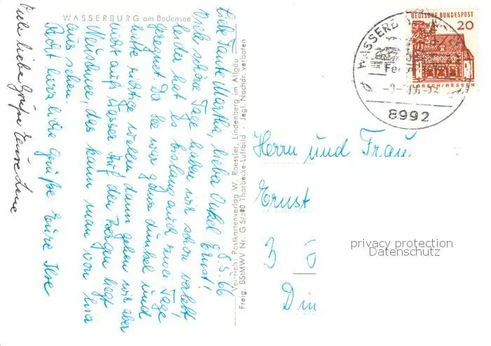 73811162 Wasserburg_Bodensee Fliegeraufnahme Wasserburg Bodensee postalisch gelaufen 1966 Erhaltung siehe scans [FriedD77] [Frierer ]