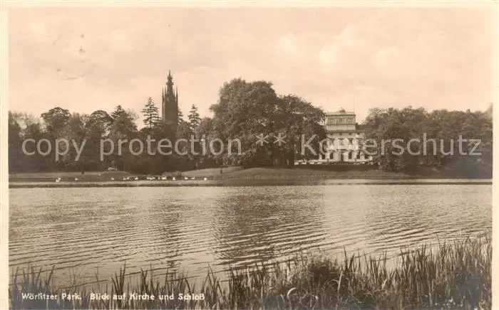 AK / Ansichtskarte 73811249 Woerlitz Woerlitzer Park mit Kirche und Schloss Woerlitz