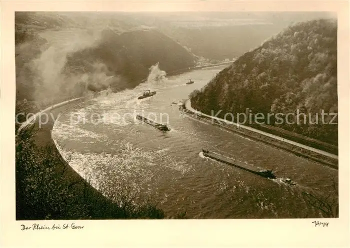 73811319 St_Goar_Rhein Panorama mit Rheinschiffen postalisch nicht gelaufen 1921-1965 Erhaltung siehe scans [FriedD77] [Frierer ]