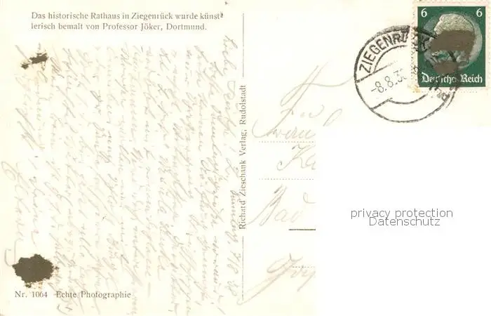 73811387 Ziegenrueck Bemaltes Rathaus Ziegenrueck postalisch gelaufen 1936 Erhaltung siehe scans [FriedD77] [Frierer ]