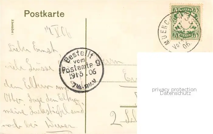 73811393 Muenchen Mariensaeule Muenchen postalisch gelaufen 1906 Erhaltung siehe scans [FriedD77] [Frierer ]