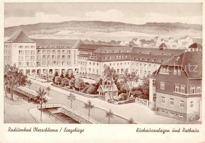 AK / Ansichtskarte 73811626 Oberschlema_Erzgebirge Radiumbad Kurhausanlagen und Rathaus Oberschlema_Erzgebirge