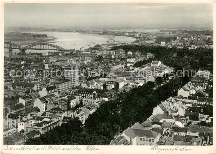 73811636 Duesseldorf Stadtpanorama mit Blick auf den Rhein Duesseldorf postalisch gelaufen 1933 Fliegeraufnahme Erhaltung siehe scans [FriedD77] Fliegeraufnahme[Frierer ]