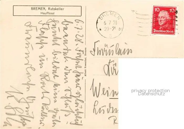 73811639 Bremen Ratskeller Hauffsaal Bremen postalisch gelaufen 1928 Erhaltung siehe scans [FriedD77] [Frierer ]