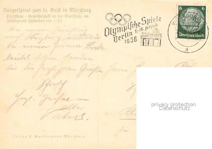 73811664 Wuerzburg Buergerspital zum hl. Geist Trinkstube Gewoelbeschiff Wuerzburg postalisch gelaufen 1936 Erhaltung siehe scans [FriedD77] [Frierer ]