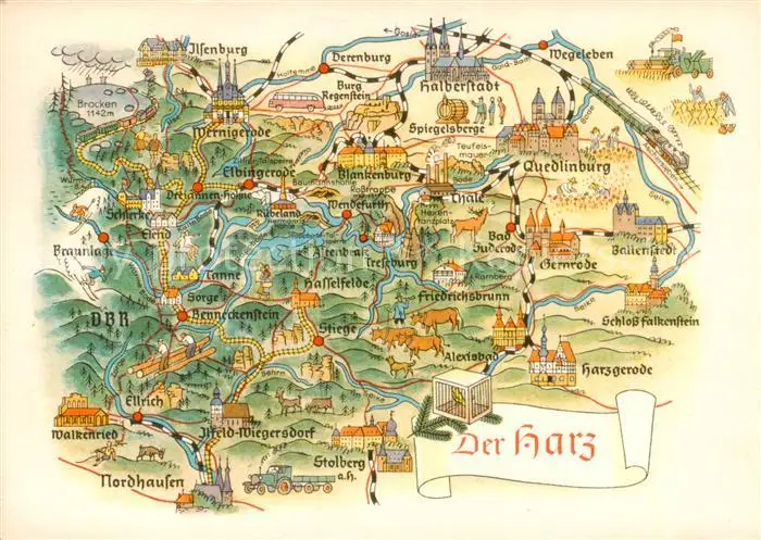 73811677 Harz_Region Landkarte der Region Harz Region postalisch gelaufen 1966 Erhaltung siehe scans [FriedD77] [Frierer ]
