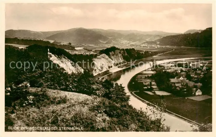 AK / Ansichtskarte 73812092 Steinmuehle_Pegestorf_Wesertal Blick ins Wesertal mit Stein oder Teufelsmuehle an der Weser