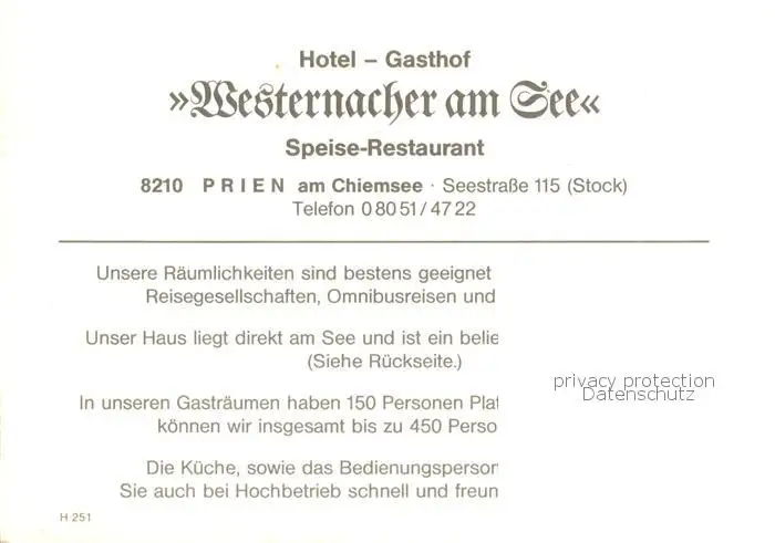 73812784 Prien_Chiemsee Hotel Gasthof Westernacher am See Prien Chiemsee postalisch nicht gelaufen nach 1965 Erhaltung siehe scans [WerneD78] [WernPID7 ]
