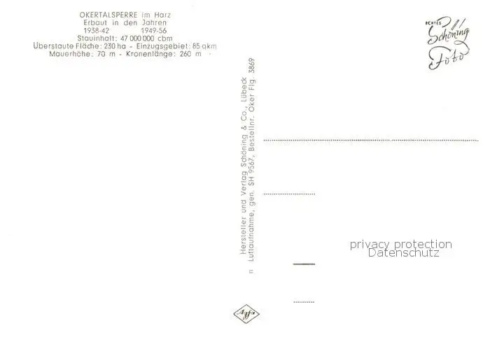 73812920 Okertalsperre Panorama Okertalsperre postalisch nicht gelaufen 1921-1965 Fliegeraufnahme Erhaltung siehe scans [FriedD77] Fliegeraufnahme[Frierer ]